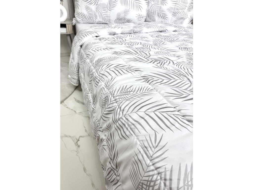Jemný listový vzor v neutrálnych tónoch pôsobí čisto, moderne a harmonicky. Vďaka svojej univerzálnosti sa ľahko kombinuje s rôznymi farbami obliečok aj štýlmi interiéru – od moderných až po klasické spálne.