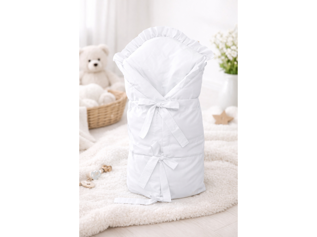 Jednoduchá, nadčasová a vždy krásna. Klasická obliečka na zavinovačku v čisto bielej farbe je ideálna pre prvé dni s bábätkom – na spánok, dojčenie aj do kočíka. Vďaka trojitému viazaniu na stuhy bábätko pevne a bezpečne zabalíte a obliečka drží tvar.
