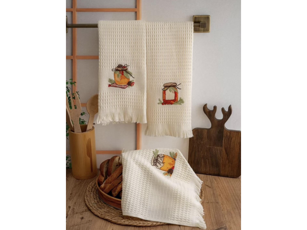 Kvalitné hustotkané bavlnené kuchynské utierky s jemnou výšivkou lekváru 🍓🍯 vnesú do vašej kuchyne útulnosť, vôňu domova a hrejivú atmosféru blížiacich sa Vianoc 🎄. Utierky sú balené v krásnej darčekovej krabičke, čo z nich robí ideálny darček pre milovníkov domácich dobrôt, varenia aj štýlového kuchynského textilu.