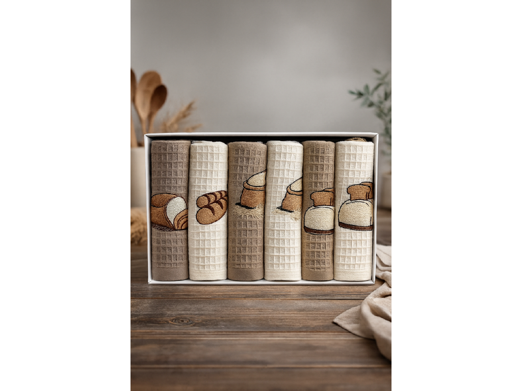 🥖 Kuchynské utierky „vaflové“ s motívom pečiva – set 6 ks v darčekovom balení