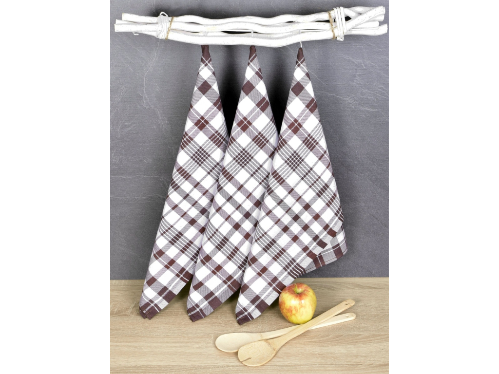 Luxusné kuchynské utierky, Karo Hnedé egyptská bavlna set 3 ks