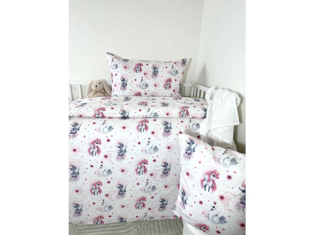 Obliečka do postieľky Jednorožec a labuť 90x130/45x65 cm