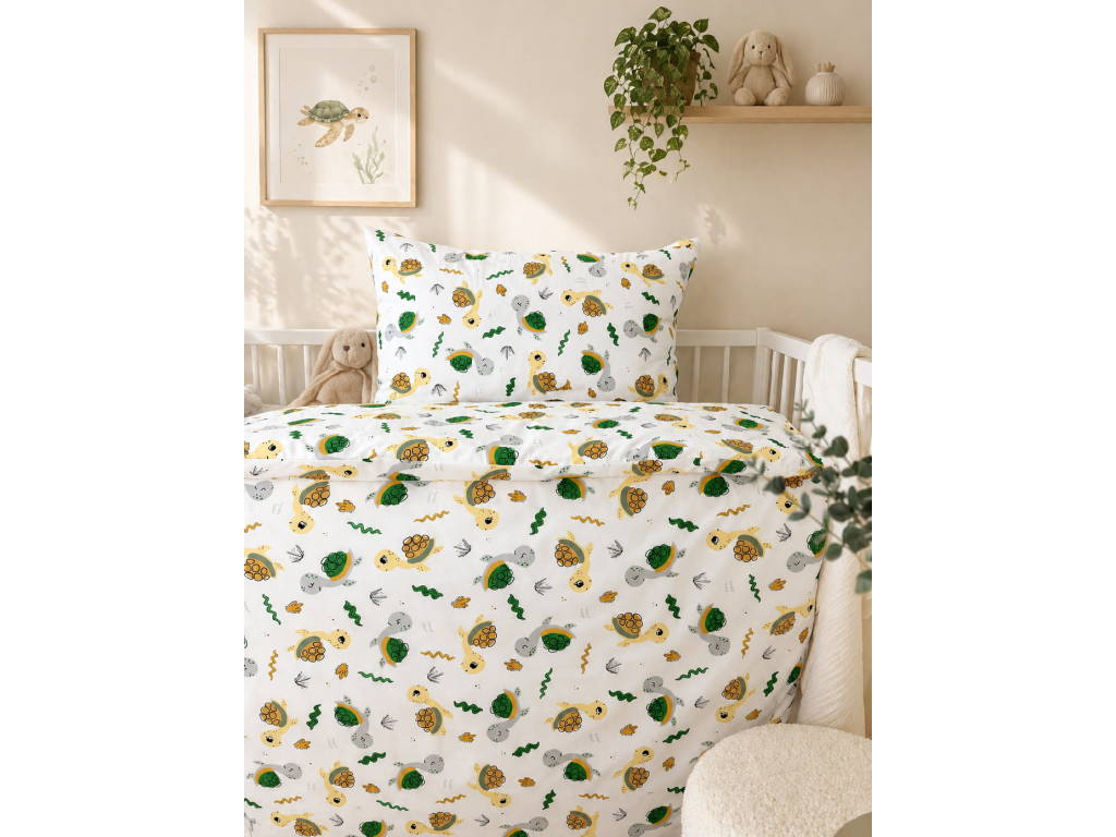 🐢 Detské bavlnené obliečky do postieľky Korytnačka 90x130/45x65 cm