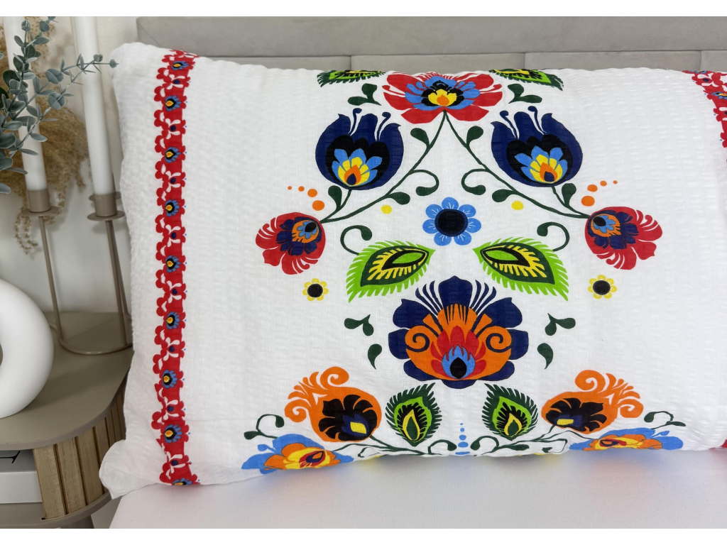 Dolaďte svoju spálňu krásnou obliečkou na relaxačný vankúš Náhradný manžel, ktorá spája pohodlie a tradičný slovenský dizajn. Folklórny vzor s červeným prúžkom dodá interiéru jedinečný charakter a vytvorí príjemnú atmosféru na oddych aj spánok.