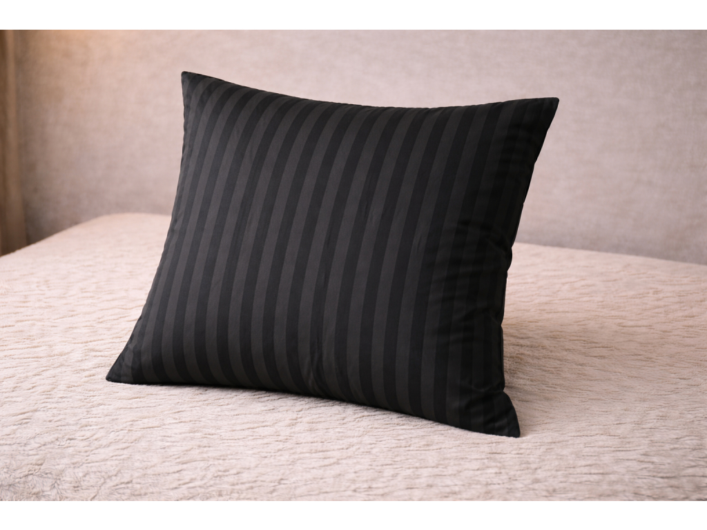 Štýlová damašková obliečka na vankúš v elegantnej čiernej farbe s jemným prúžkovým vzorom je ideálnym doplnkom do spálne, obývačky aj hotelových interiérov. Pôsobí luxusne, nadčasovo a jednoducho sa kombinuje s posteľnou bielizňou aj dekoračnými textíliami.
