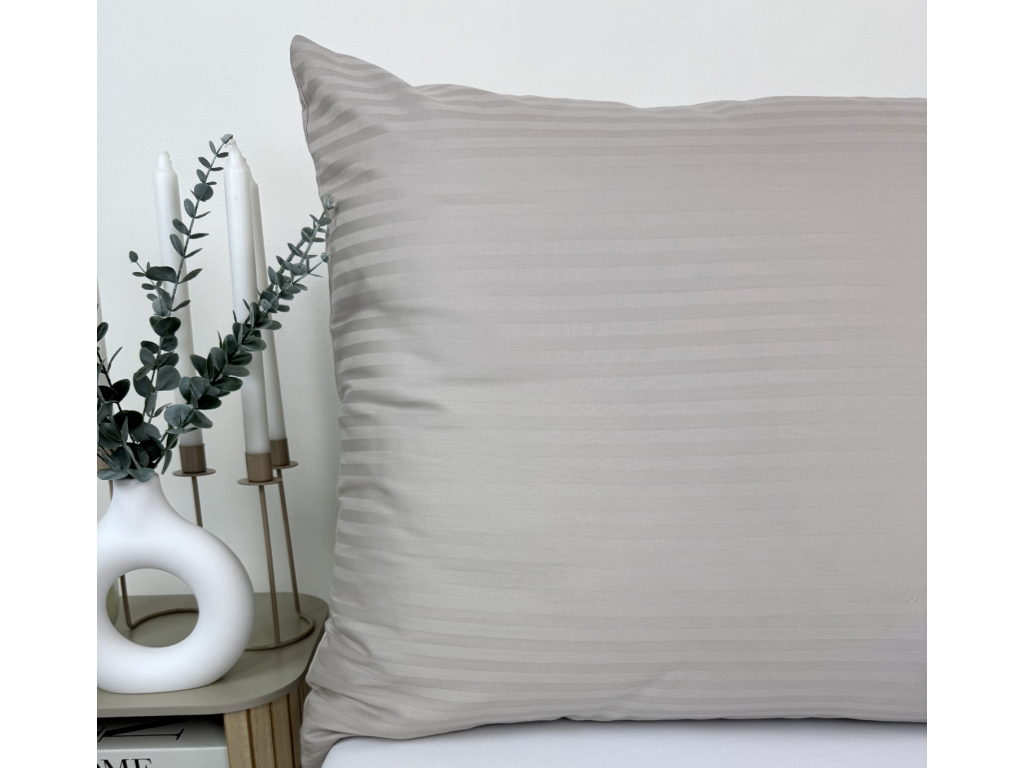 Béžová farba s jemným tónovým pruhovaným vzorom pôsobí čisto a moderne, no zároveň dodáva priestoru sofistikovaný nádych. Vďaka zapínaniu na zips je manipulácia s obliečkou jednoduchá a rýchla. Obliečka je odolná voči žmolkovaniu a vyblednutiu, takže si udrží svoj luxusný vzhľad aj po opakovanom praní.