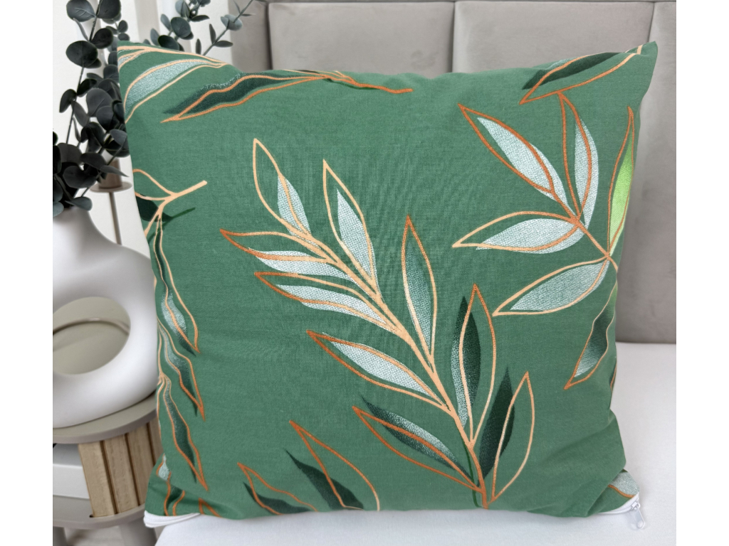 Oživte svoj interiér sviežou obliečkou Greenery s elegantným botanickým motívom v odtieňoch zelenej, béžovej a oranžovej. Rozmer 40 × 40 cm je ideálny na dekoračné aj bežné vankúše.