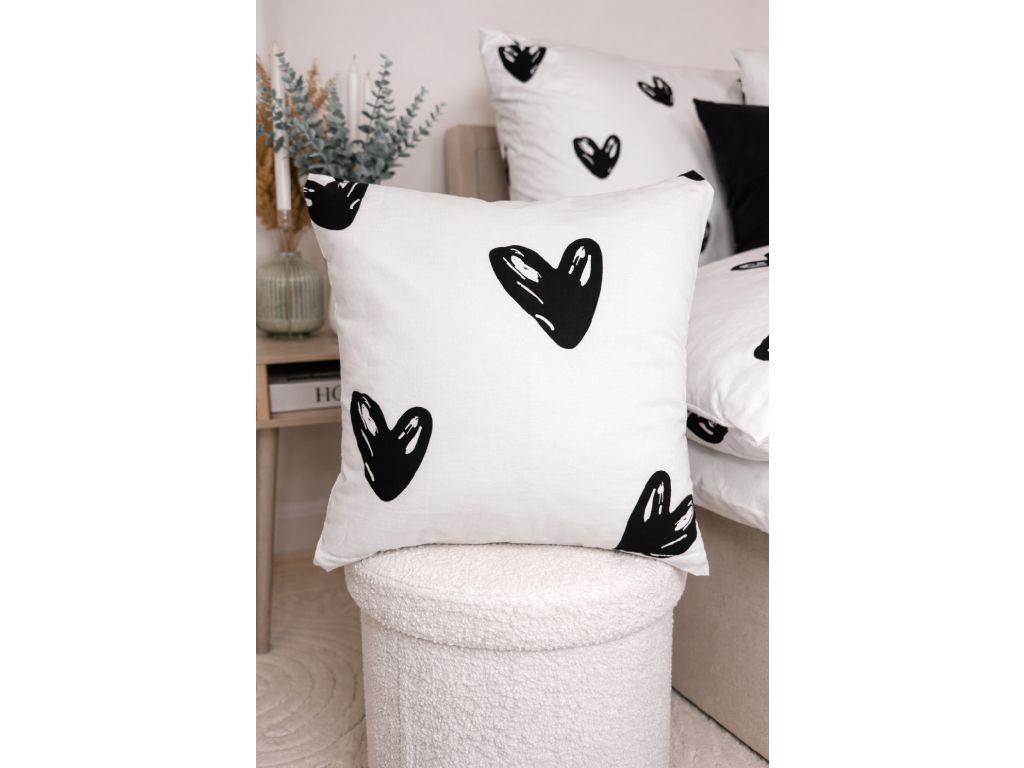 Minimalistický dizajn s čiernymi srdiečkami na bielom podklade pôsobí elegantne a nadčasovo. Obliečka je ideálna ako dekoračný vankúš do obývačky, spálne aj detskej izby a perfektne sa kombinuje s ostatnými produktmi z tejto kolekcie.