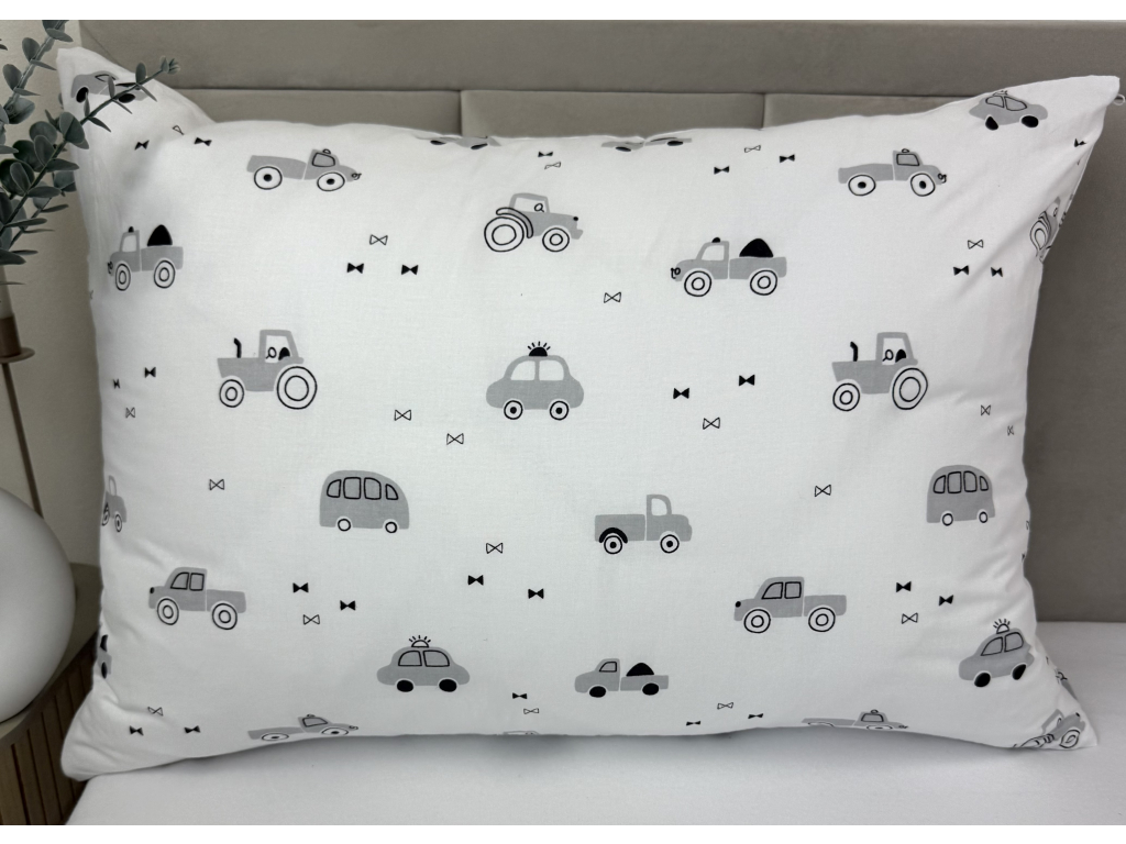 🚗 Detská bavlnená obliečka na vankúš Sivé autíčka 45x65 cm – jemný motív pre chlapcov