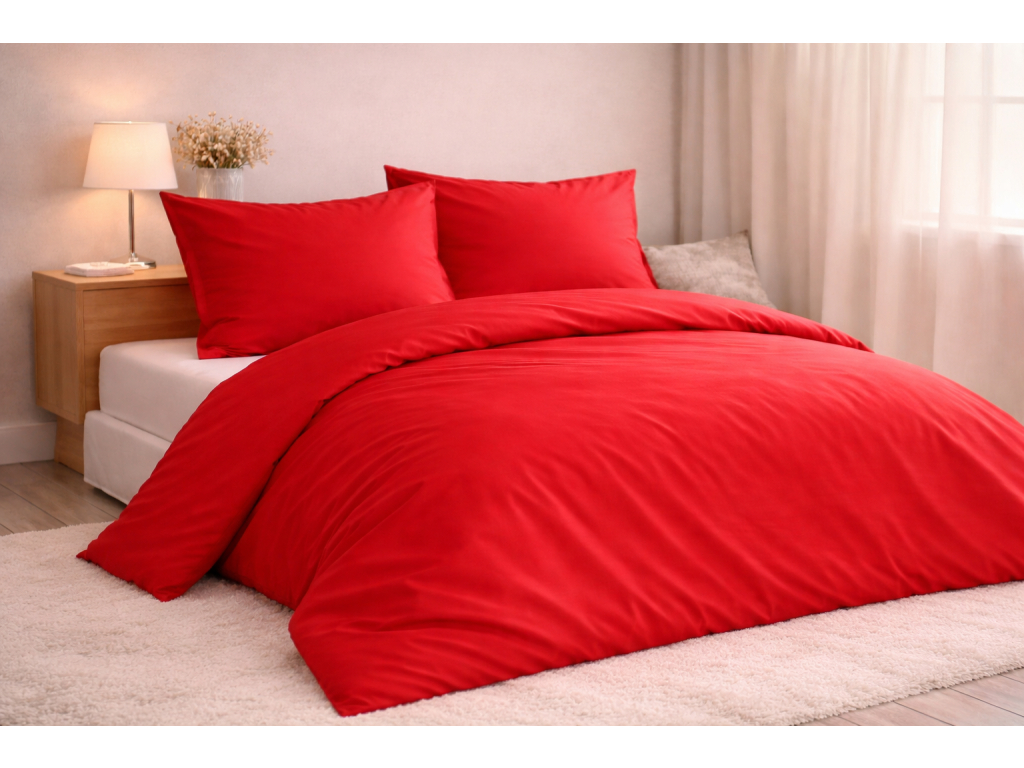 Posteľná obliečka bavlnený satén Červená 140x200/70x90 cm je výrazným prvkom modernej spálne. Intenzívny červený odtieň symbolizuje energiu, vášeň a eleganciu, pričom v kombinácii s jemným saténovým leskom pôsobí luxusne a sofistikovane.
