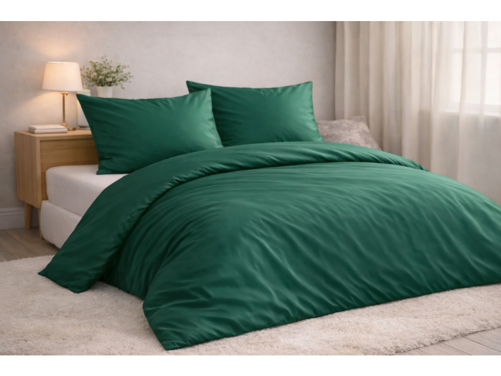 Posteľná obliečka bavlnený satén Zelená 140x200/70x90 cm je výrazným, no zároveň elegantným doplnkom modernej spálne. Sýty zelený odtieň pôsobí luxusne, harmonicky a dodáva priestoru hĺbku aj charakter.