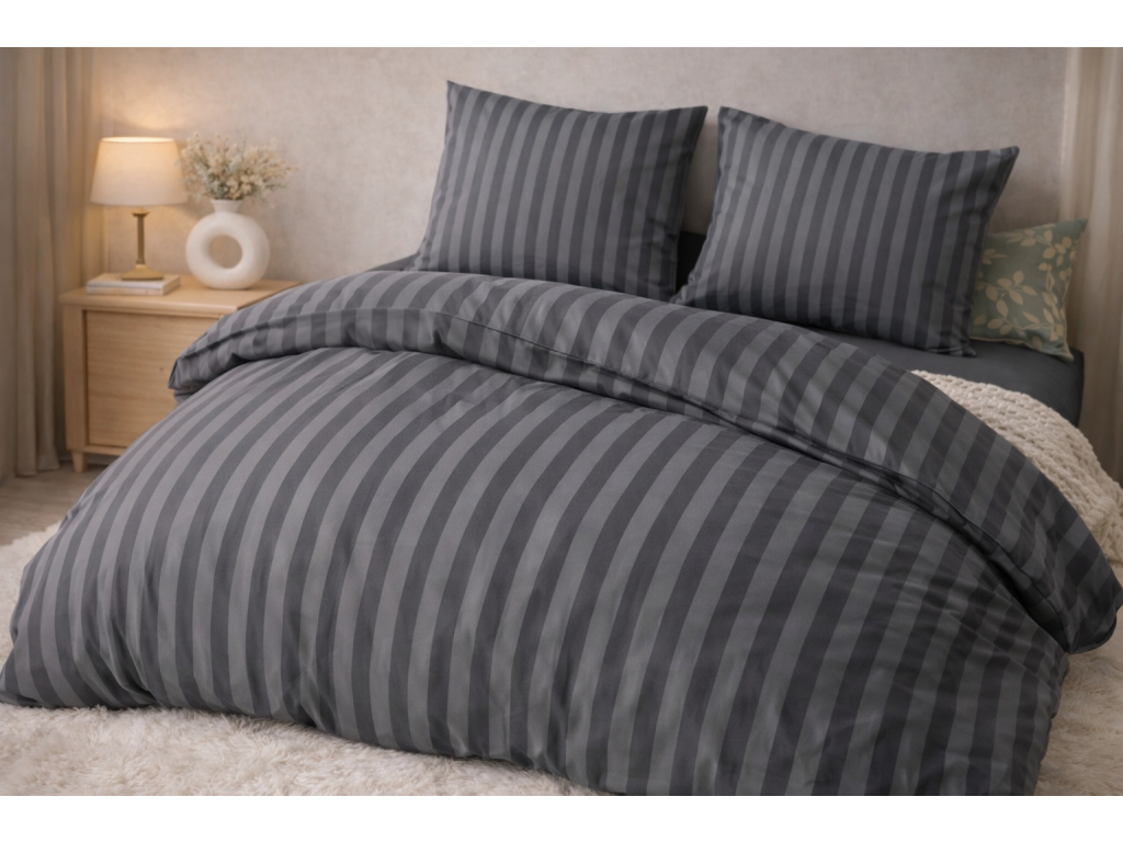 Elegantné hotelové povlečenie z damašku v tmavo sivej farbe je ideálnou voľbou pre hotely, penzióny aj domácnosti, ktoré hľadajú kombináciu štýlu, odolnosti a jednoduchej údržby. Nadčasový prúžkový vzor pôsobí luxusne a profesionálne, pričom sa ľahko kombinuje s akýmkoľvek interiérom spálne.