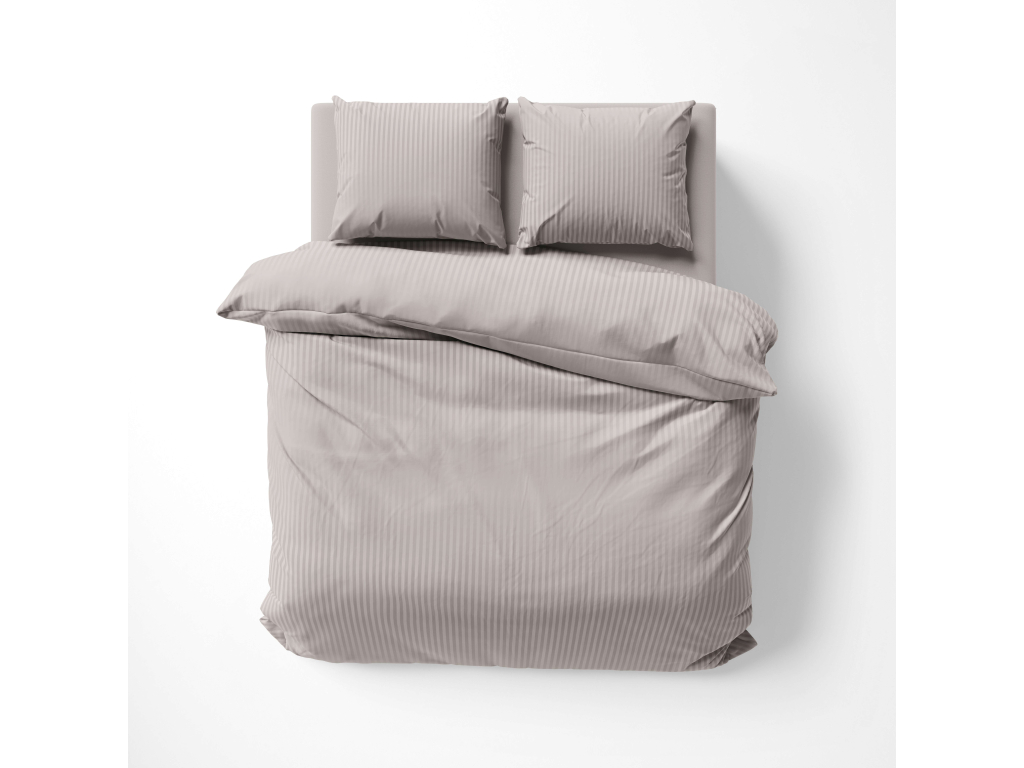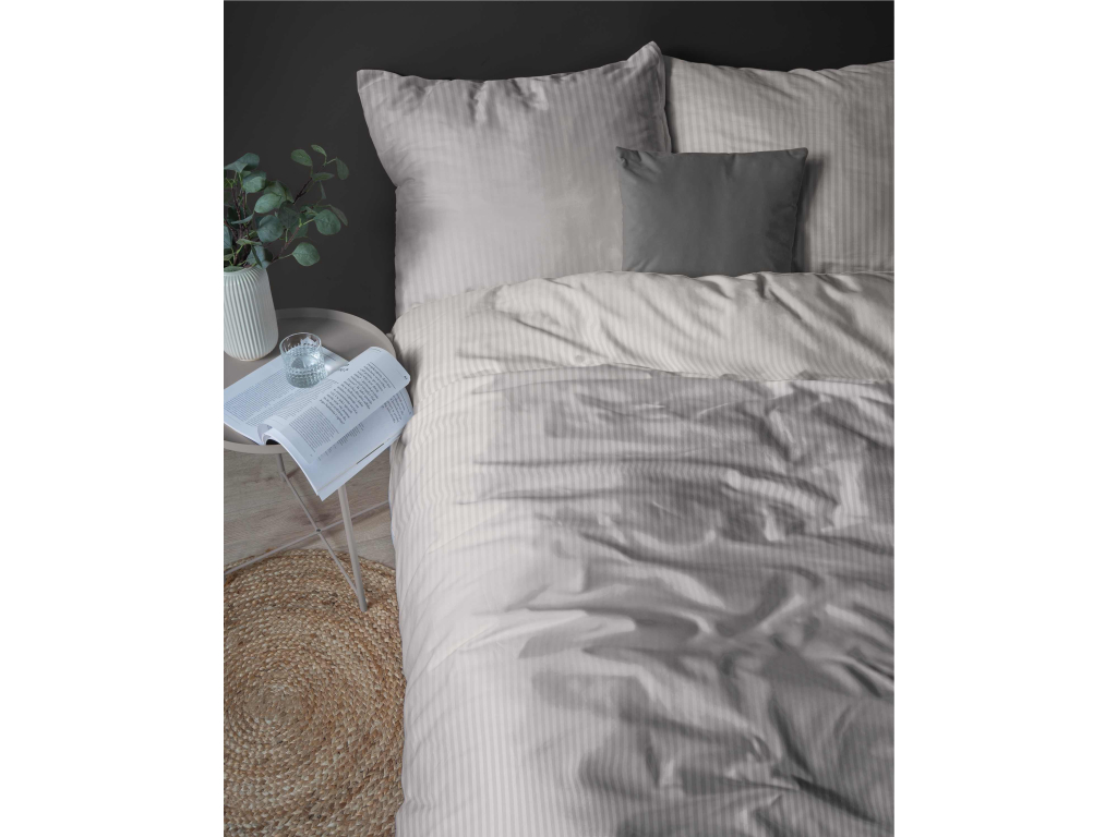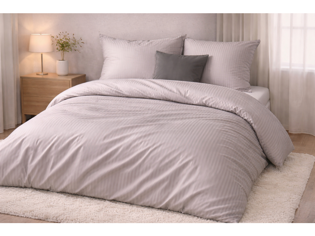 Obliečky sú vyrobené zo 100 % bavlneného damašku, ktorý je tkaný žakárovou technikou s jemnými prúžkami. Vďaka tomu pôsobí látka luxusne, má decentný lesk a zároveň si zachováva vysokú pevnosť a dlhú životnosť.