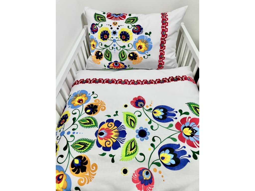 Posteľná obliečka do postieľky FOLKLÓR červený prúžok 90x130/45x65cm