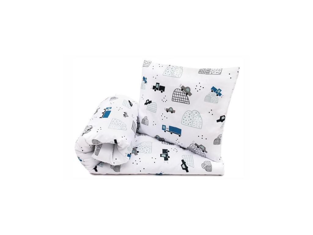 Rozkošné detské obliečky Modré Autá 🚙 vnesú do každej detskej postieľky radosť, farby a sny plné dobrodružstva. Motív veselých modrých autíčok a dopravných značiek poteší všetkých malých vodičov, ktorí milujú pohyb a autá.