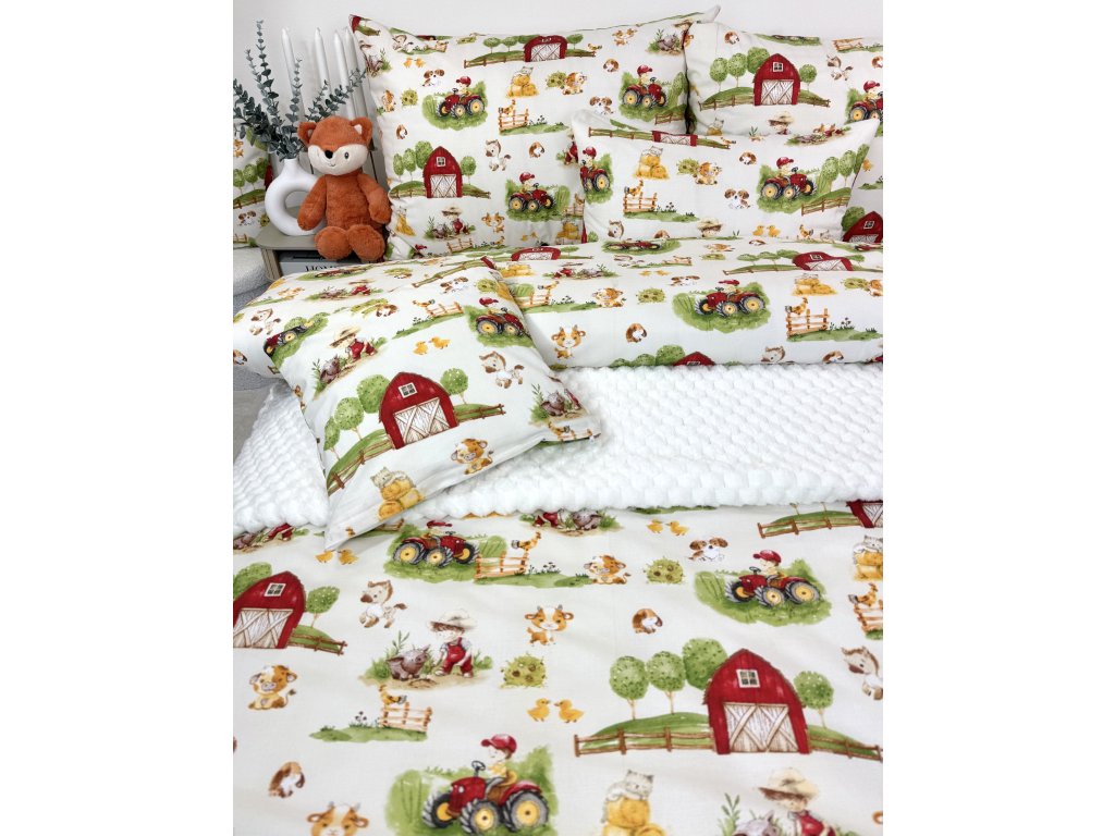 Pre všetky deti, ktoré milujú farmu, zvieratká a traktory 🚜. Obliečky Farmárik sa stanú ich obľúbeným spoločníkom na sladké sny.