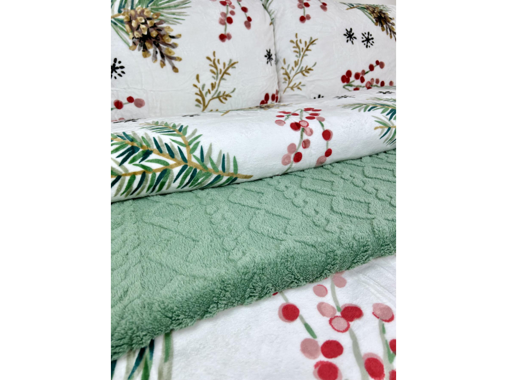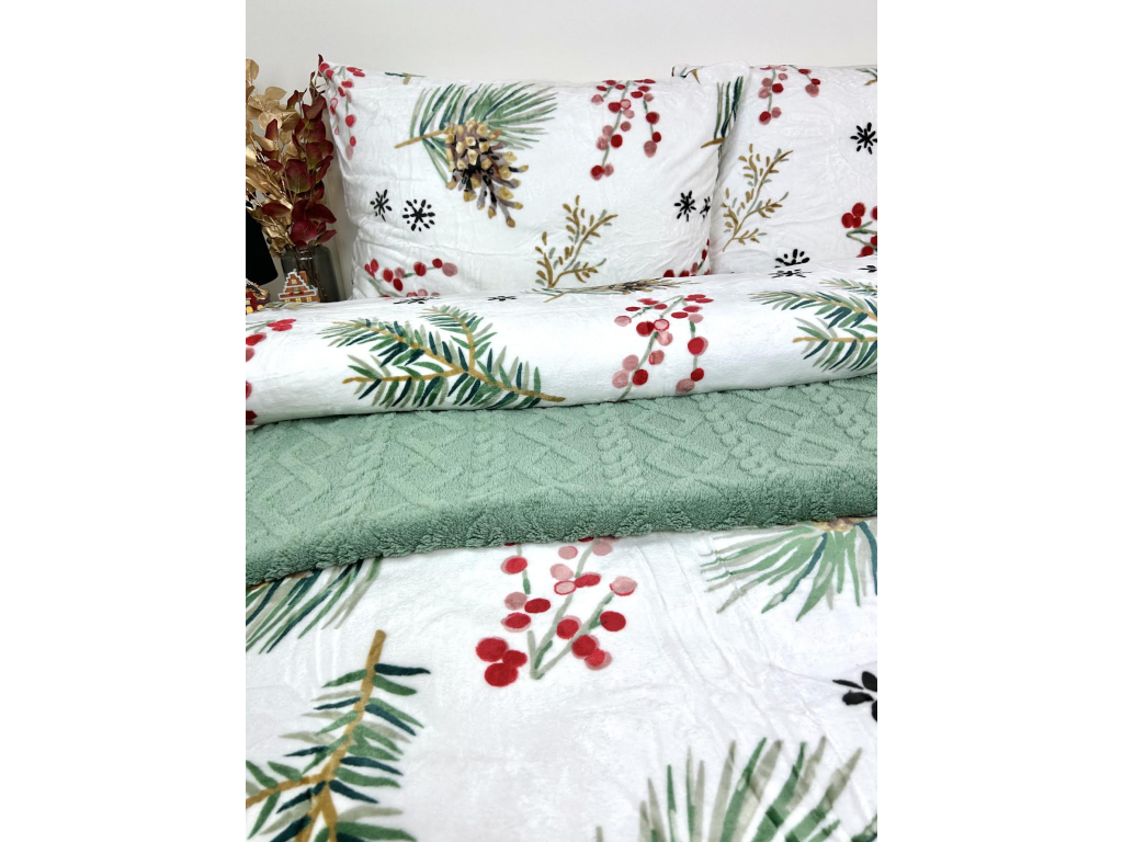 Vychutnajte si zimné pohodlie a sviatočnú atmosféru s posteľnou obliečkou Mikroplyš Ihličie v rozmere 140x200/70x90 cm. Nádherný vzor s ihličím, červenými bobuľami a jemnými zimnými detailmi premení vašu spálňu na útulné miesto plné tepla a pokoja.