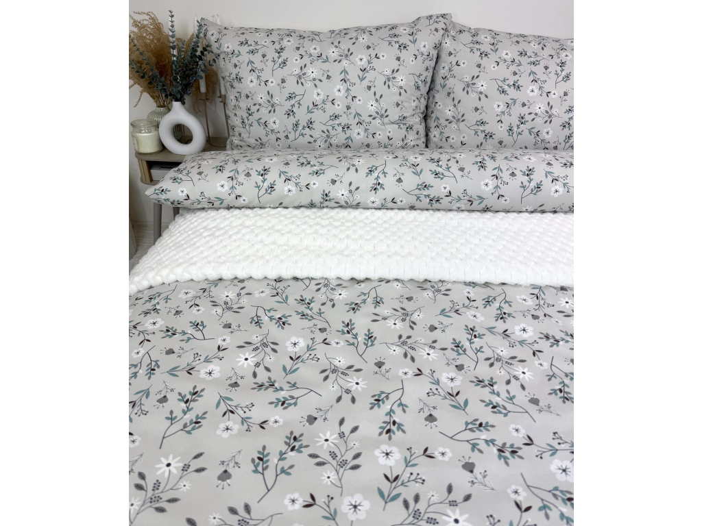 Obliečky Sivá lúka vynikajú jemným kvetinovým vzorom na elegantnom sivom podklade, ktorý pôsobí pokojne, čisto a nadčasovo. Sú ideálnou voľbou pre každého, kto má rád prírodné motívy a harmonickú atmosféru v spálni.