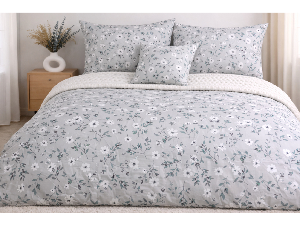 Pre všetkých, ktorí hľadajú spojenie prírodného motívu, jemných farieb a kvalitnej bavlny. Sivý podklad pôsobí elegantne a kvetinový vzor dodá spálni pocit útulna bez rušivého efektu.