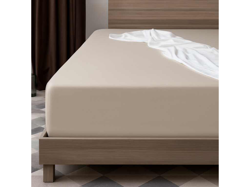 Svetlo hnedá jersey plachta prinesie do vašej spálne prirodzený, elegantný a útulný vzhľad. Je ideálna na každodenné používanie – drží tvar, nekrčí sa a zostáva príjemná aj po mnohých praniach.