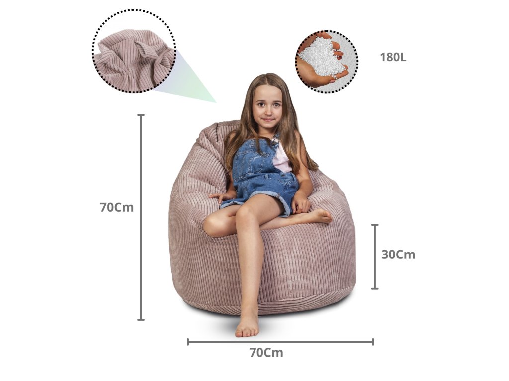 - Výplň: polystyrénové guličky (180 l) – antialergické a tvarovo prispôsobivé
