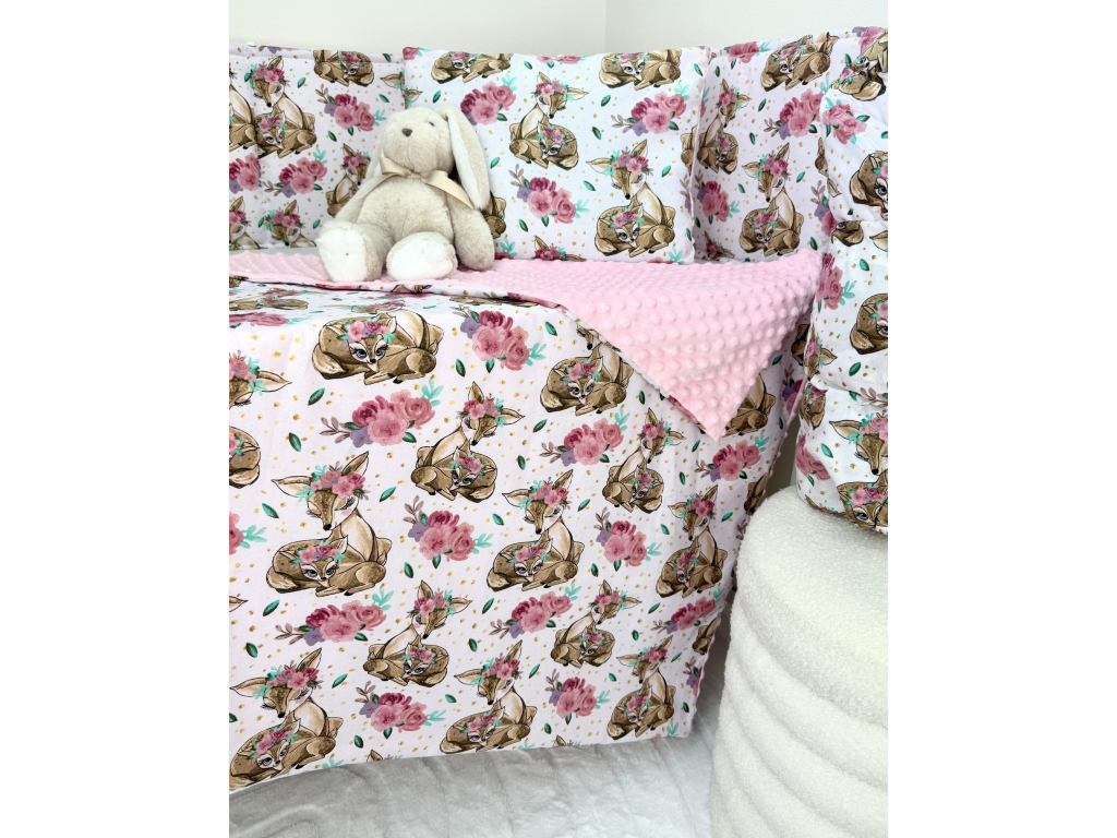 Set Intermedic do kočíka Srnka biela/minky ružová 100x75/40x30 cm