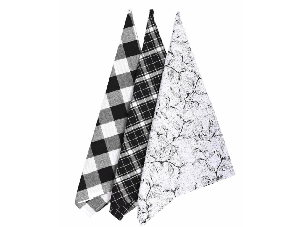 Perfektne savé bavlnené utierky v príjemnom vzore sú farebne zladené tak, aby v kuchyni pôsobili vkusne a elegantne.
