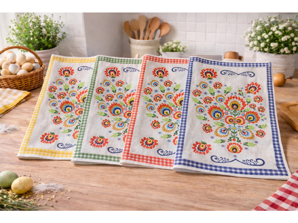 Vneste do svojej kuchyne tradíciu, farby a kvalitu. Kuchynská utierka Folk je vyrobená zo 100 % bavlny, ktorá vyniká výbornou savosťou, odolnosťou a príjemným povrchom. Krásny folklórny vzor s kvetinovým motívom dodá vašej kuchyni jedinečný charakter a tradičný slovenský štýl.