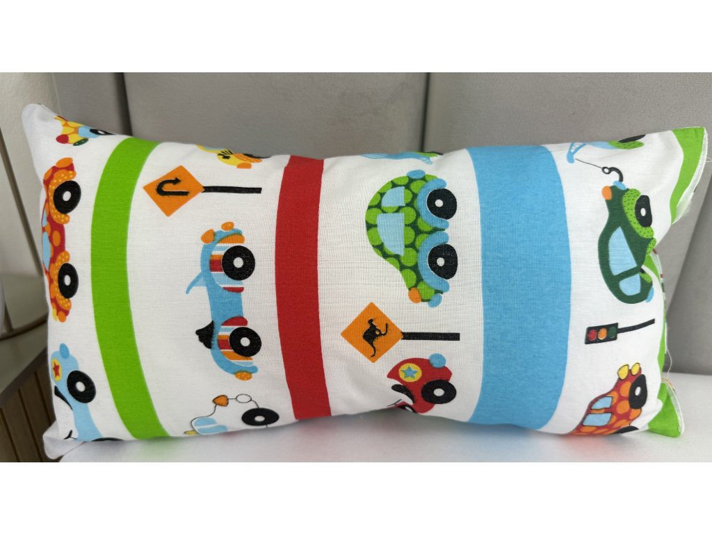 Detský vankúšik s motívom farebných autíčok je ideálnou voľbou do detskej postieľky, na cesty alebo na popoludňajší odpočinok. Je vyrobený z jemnej a odolnej 100 % bavlny, ktorá je príjemná na dotyk a šetrná k detskej pokožke.